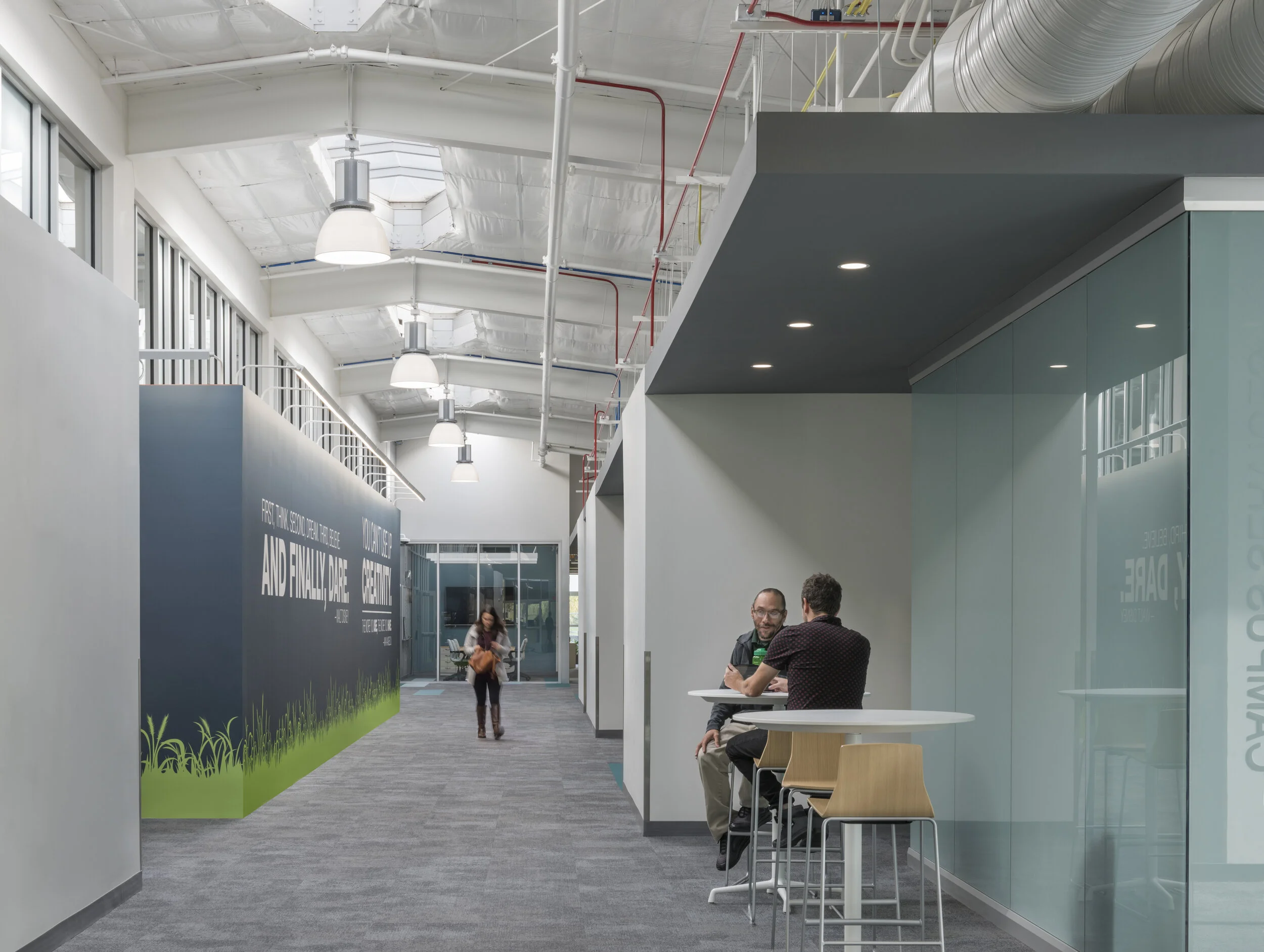 The College of DuPage Administrative Building Remodel is the renovation of a 22,500 SF pre-engineered steel building into an administrative center, relocating several of the College’s departments from aging facilities at the main campus. The building will have customized suites for multiple administrative departments for the College, with each suite each functioning autonomously, with their own conference rooms, supply rooms, and offices. To encourage collaboration and interaction between these administrative programs, shared core spaces are provided, such as a lounge areas in main corridors, a fifty person conference room, and shared break room. These suites are located within the building according to the amount of visitors they are expected to receive, with Procurement Services located near the main entrance, and more private suites such as Planning and Research located near the rear entrances.